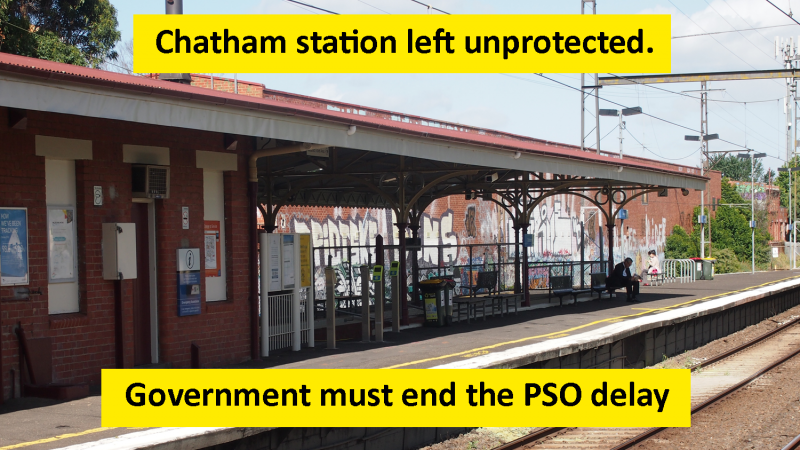 Surrey Hills residents are amongst those across Melbourne left unprotected as a result of the Labor government holding up the deployment of PSOs to railway stations such as Chatham.