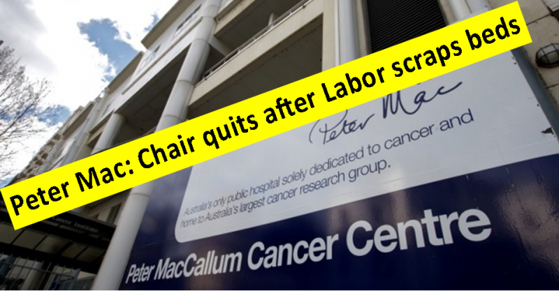 The Chair of the Peter MacCallum Cancer Centre has resigned following the Victorian Labor government’s scrapping of 42 cancer beds for Peter Mac in the new Victorian Comprehensive Cancer Centre.