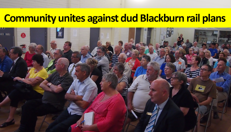 It was a full house last night as the Blackburn community united to protest against the government’s botched plans for the Blackburn rail project.